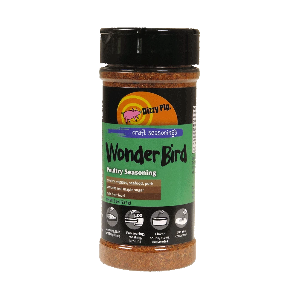 As we usually do when questions like this arise, we got to work. Owner Chris Capell is a chicken fanatic, after all, so not much motivation was needed. It’s his favorite thing to cook, and Dizzy Pig’s competition team won 2nd place in chicken at the Jack Daniels World BBQ Championships. That’s at least in part to fantastic blends like Wonder Bird, which is a mouthwatering mix of citrus, garlic, maple, herbs and spices.