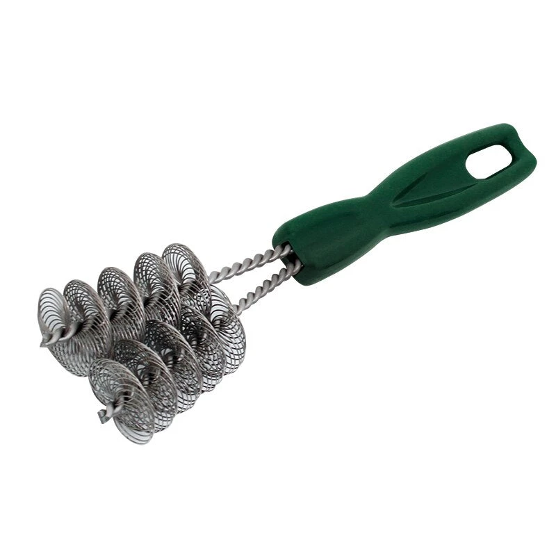 This dual-spiral grid cleaner easily and effectively cleans a stainless grid without scratching.